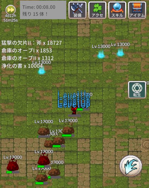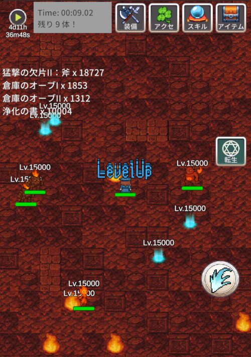 ラスボス戦の前に倍速の人は倍速を外して、自動転生も外します。