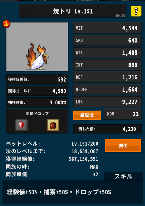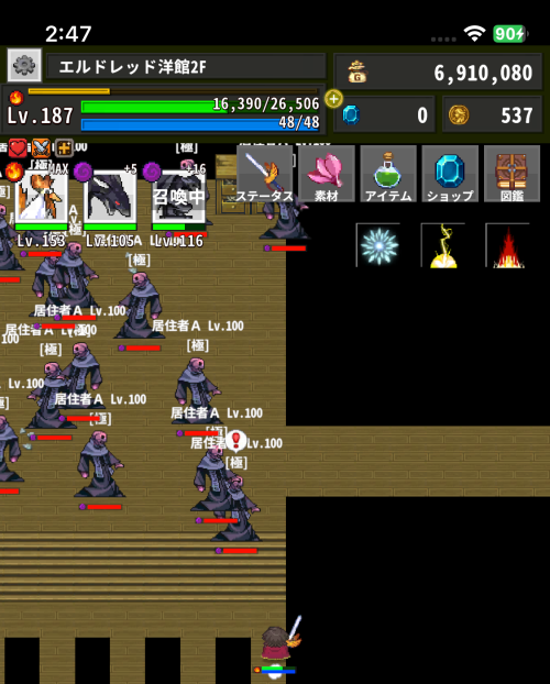 敵が強いので主人公とペットの要求ステータスが高いので、放置が難しいですね。