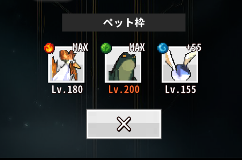 捕獲が100を全キャラ超えたら、カエルを外して、移動速度を上げるペットを追加するか、