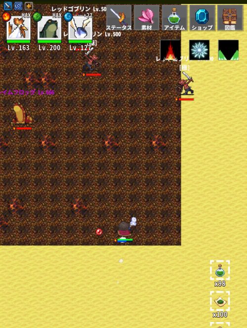 安定して集められるのは、十神のエリアのマッドカエルまでなので、周回のときには、