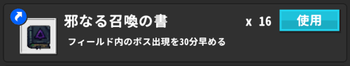 このアイテムを使うと、そのエリアにいるボスの再出現までの時間を30分短くすることができます。