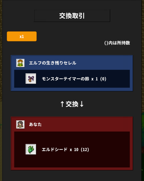 エルフの里にいるエルフから、エルドシード3つとモンスターテイマーの鈴を交換出来ます。